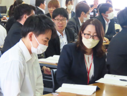 この時間を通して、午前は会社の方向性や理念について深く学び、午後からの講習では対人関係の基礎を学び、職場での円滑な人間関係づくりやスキルアップにつなげています。